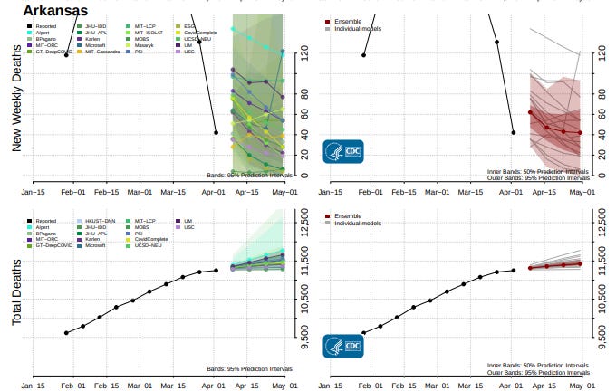 Most of the forecasts are still between 11,500 and 12,000 total deaths in the next four weeks.