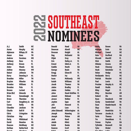 Maumelle's Carl Daughtery Jr., who has signed with the University of Central Arkansas, was among the five Arkansans nominated from the Southeast Region.