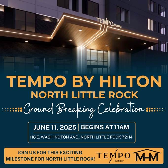 EVENTS: Next Wednesday, June 11, North Little Rock will be having a groundbreaking celebration for the new Tempo by Hilton hotel downtown. Located at the former Greyhound Terminal, the hotel will also feature meeting space. The event starts at 11 a.m. and for more information, check out the flyer below.