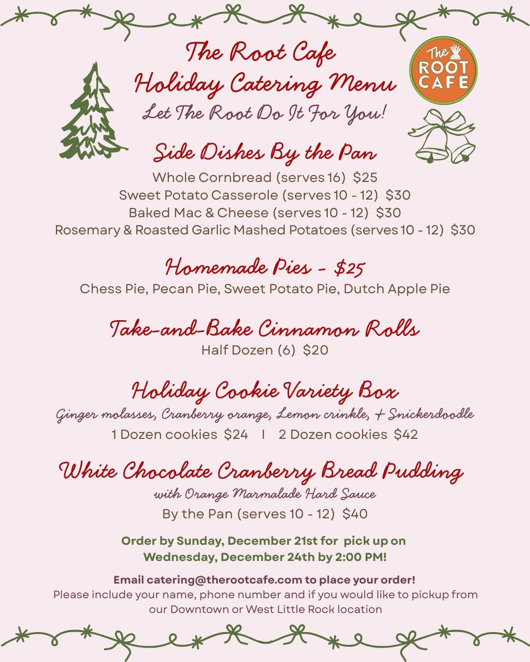 They don’t have an online ordering option, so you can email catering@therootcafe.com to place an order.