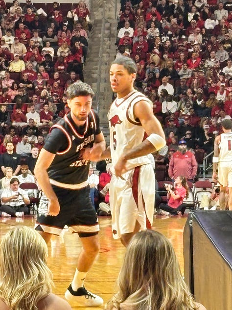 Curiously, Trevon Brazille, whose athleticism in person is jaw-dropping, only had 4 points. Brazzile, a senior, floats in the air, like a normal person would in the deep end of the pool but has been erratic in point production his entire career at Arkansas.