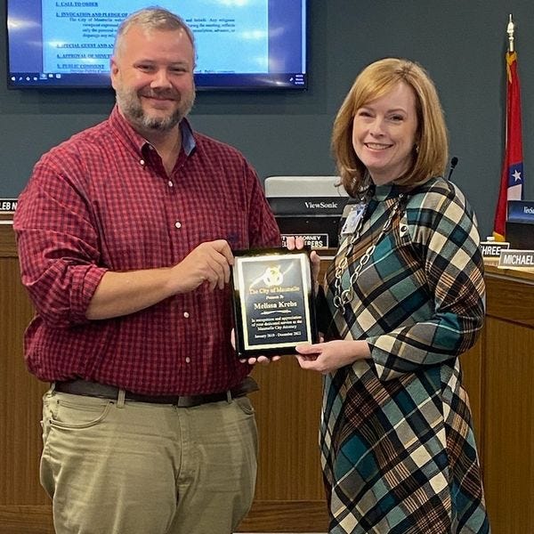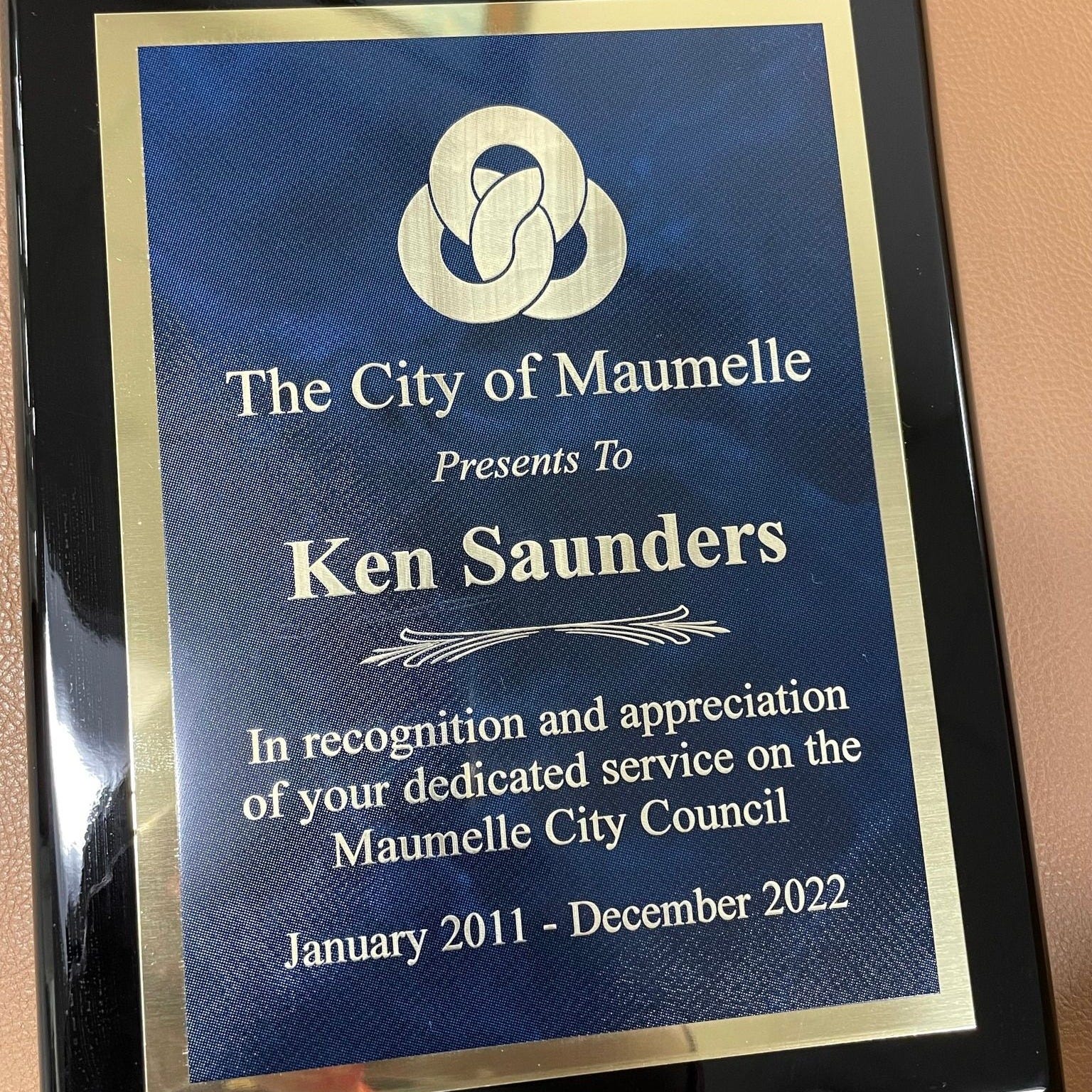 The new year means new elected officials but Maumelle took the time to recognize outgoing city attorney Melissa Krebs and council member Ken Saunders for their service to the city.