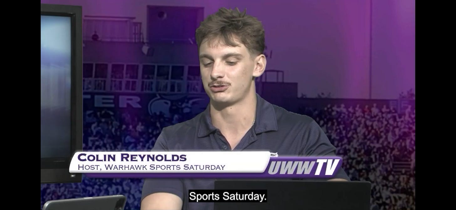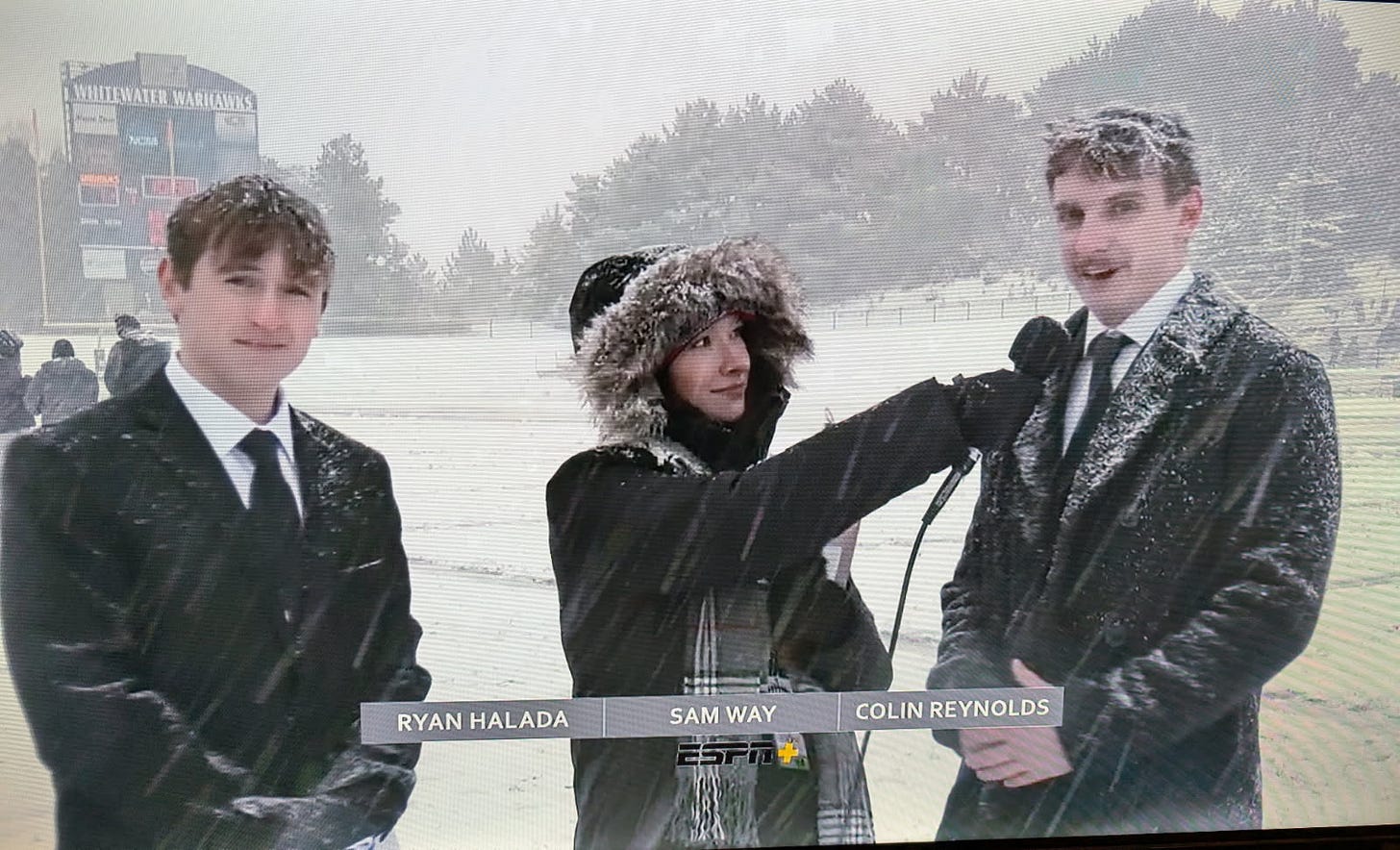 Colin Reynolds, who attends the University of Wisconsin-Whitewater and is of Maumelle, was one of more than a dozen students who helped with the Division III school’s game broadcasts on ESPN.
