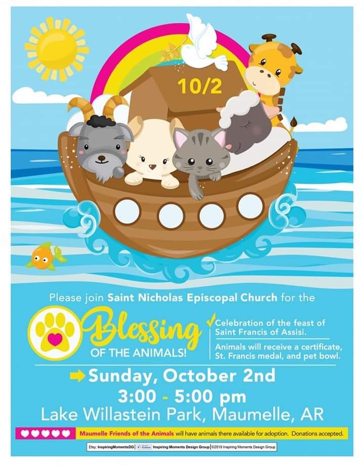 St. Nicholas Episcopal Church in Maumelle is having its annual Blessing of the Animals on Sunday, Oct. 2 at Lake Willastein.